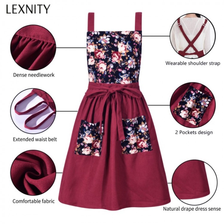 Tags: Lexnity Vintage Pinafore Apron Dress for Women with Pockets Cute Floral Chef Aprons for Kitchen Cooking Baking Gardening (Red), AP056, Products