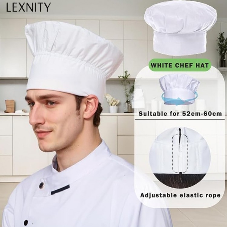 Tags: Lexnity 2 Pcs Adult Chef Hat for Men Women Cotton Adjustable Elastic for Kitchen Cooking Baking Restaurant(White), GL002, Products